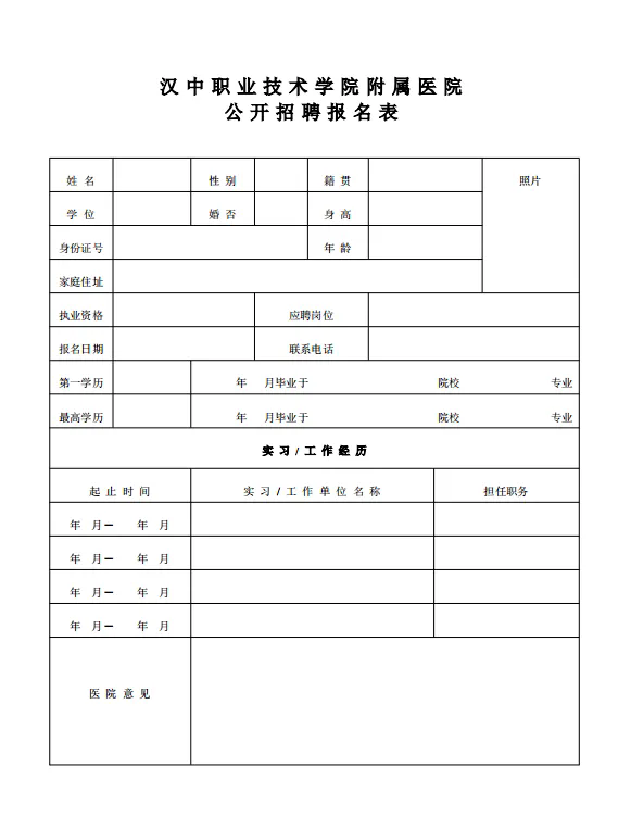 汉中职业技术学院附属医院招聘工作人员公告正文汉中职业技术学院附属医院招聘工作人员公告